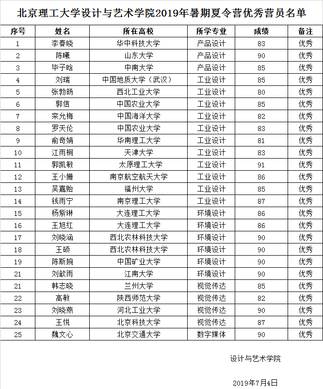 北京成品人和一品二品的区别设计与艺术学院2019年暑期夏令营优秀营员名单